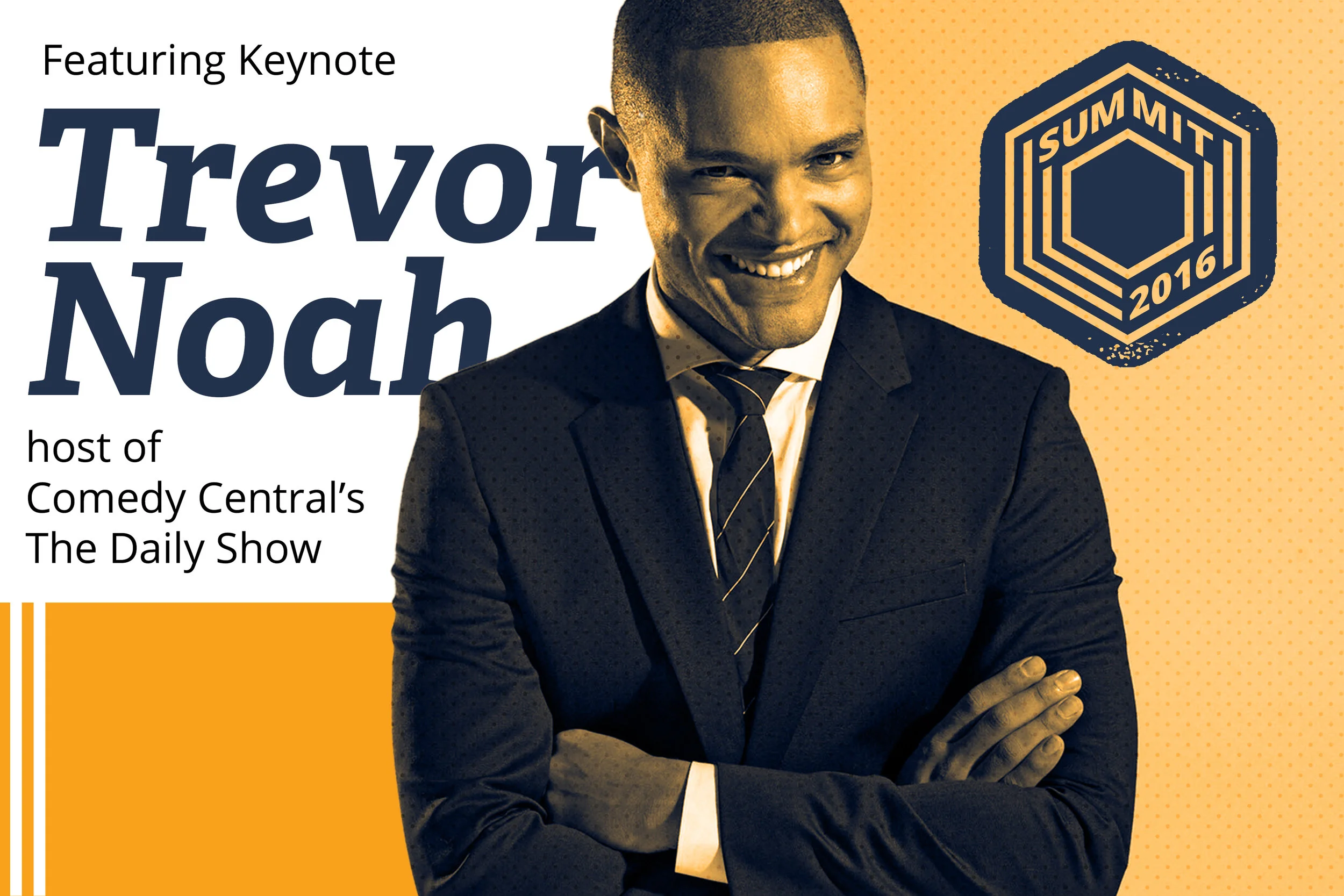 For our 2016 summit we utilized a simple, bold palette coupled with a high contrast approach to photography and motion to complement our strong event mark. The goal was to create an owned visual identity for our events allowing them to not only be a platform to launch our products, but to develop into an important gathering of minds for the Social Media industry. Having Trevor Noah as our host helped set the fun and slightly irreverent tone and provided us with some great content to engage our audience with.